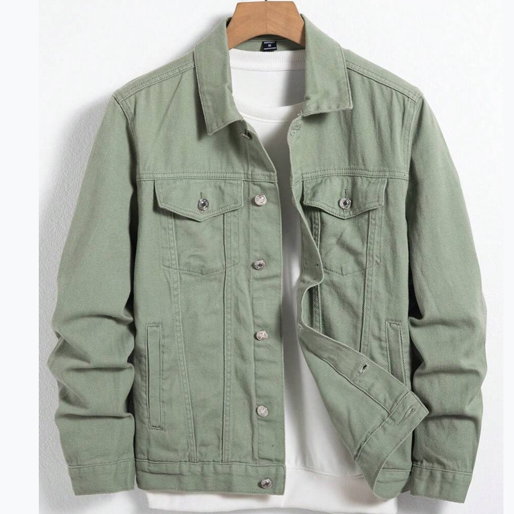 Olive Gray Cotton Denim Jacket for Men